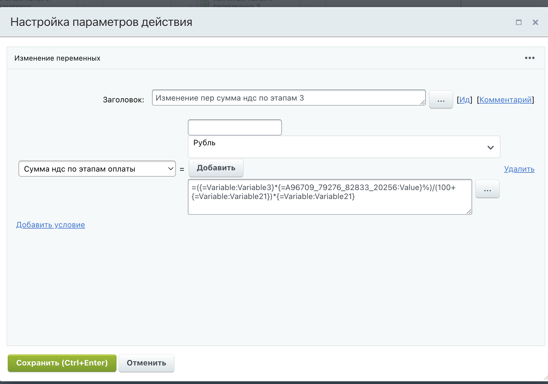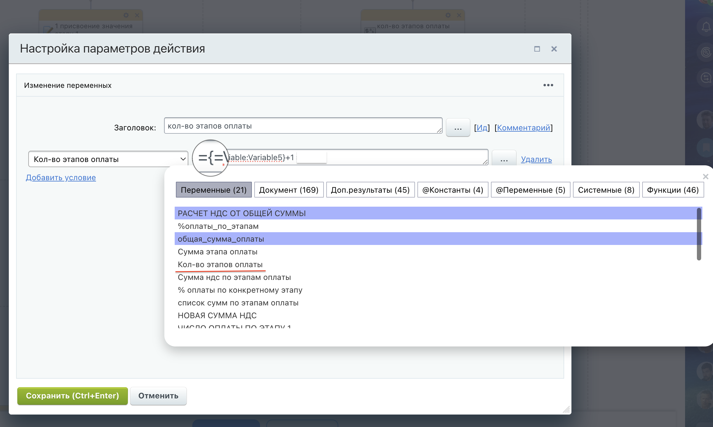 - считаем сумму этапа оплаты и также записываем значения в соответствующую переменную (множественная, число)