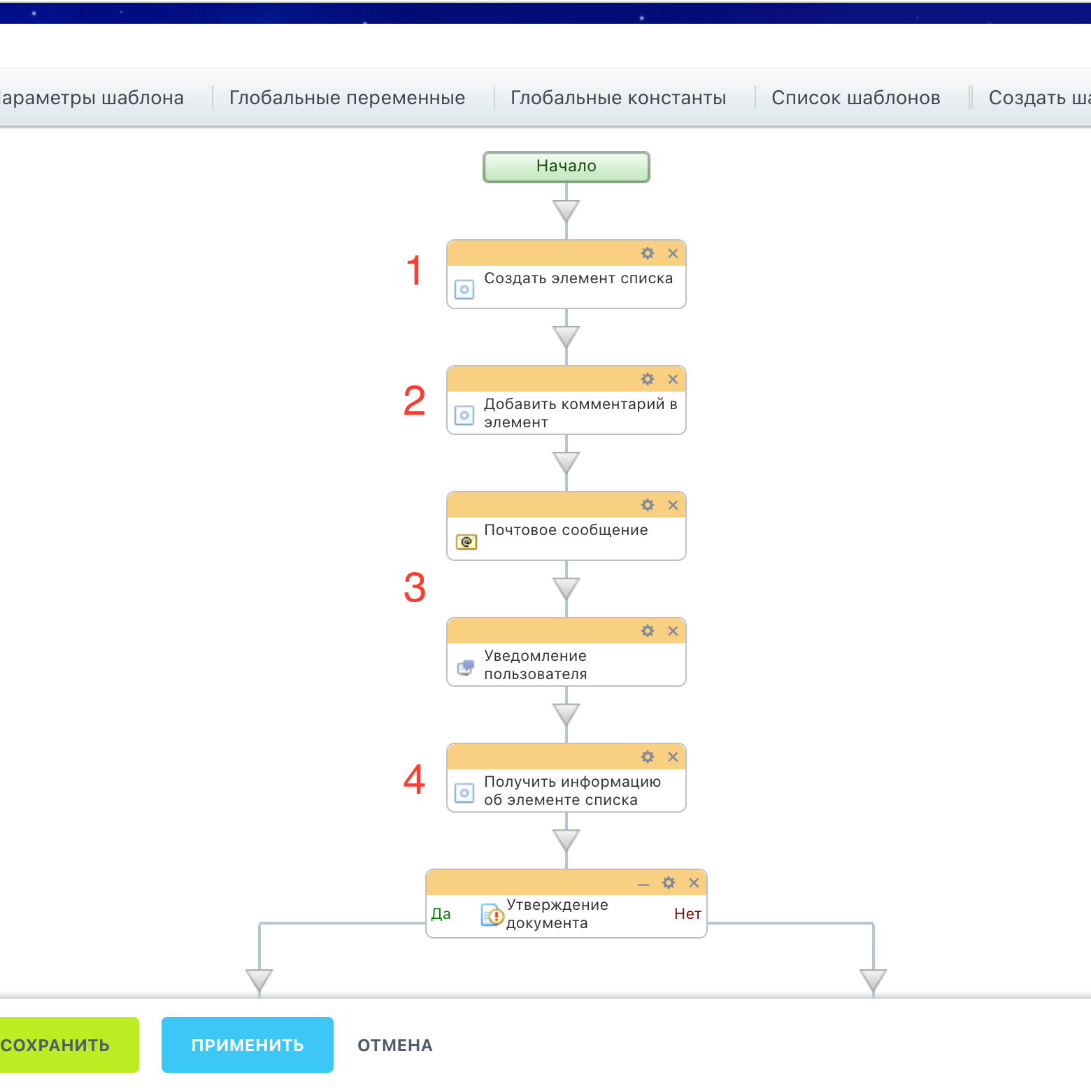 Настраиваем шаблон бизнес-процесса: